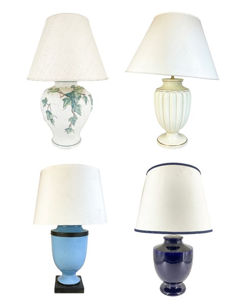 Lotto composto da quattro lampade d'appoggio in ceramica di decoro e colori dif