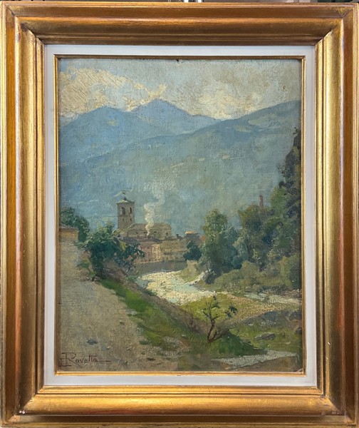 Enrico Ravetta "Sondrio" olio su cartone telato (cm 44x33,5) firmato in basso a