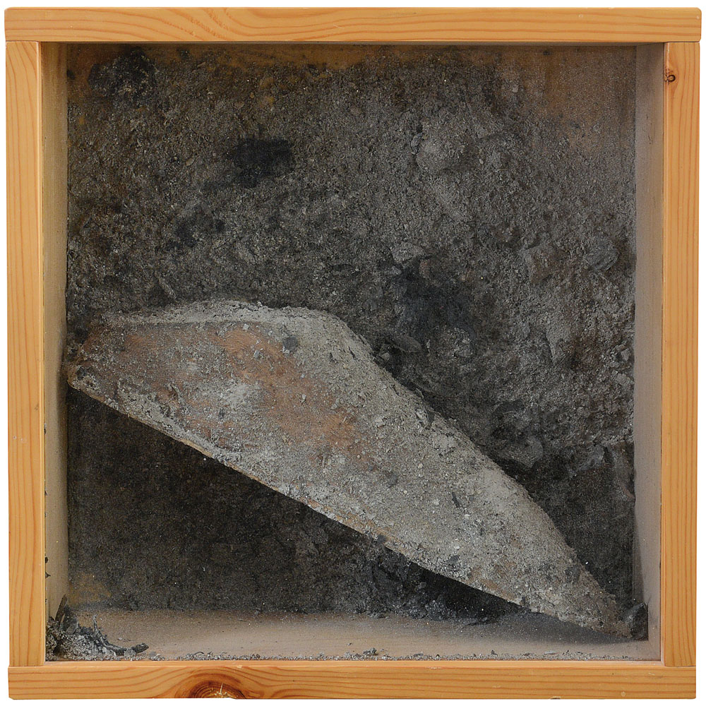 legno e cenere cm. 40x40x12,5, firma e anno al retro, dichiarazione d'autenticità dell'artista su foto.