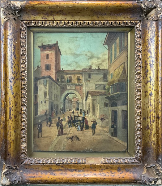 Scuola lombarda del secolo XIX "La vecchia porta Ticinese a Milano" 1860 olio
