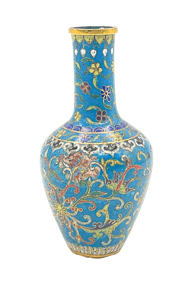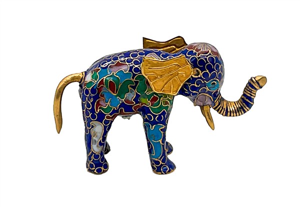 Lotto composto da un vasetto e un elefantino in metallo cloisonné, un vasetto i