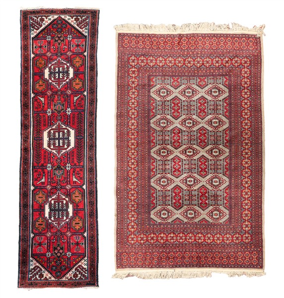 Lotto composto da un tappeto passatoia Hamadan, Persia, secolo XX (cm 297x81) unito ad un tappeto Boukhara, Pakistan, secolo XX (cm 248x161) (difetti)