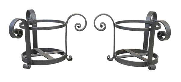 Coppia di portavaso in ferro forgiato con tripla ansa ritorta (h. cm 34) (difetti)