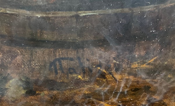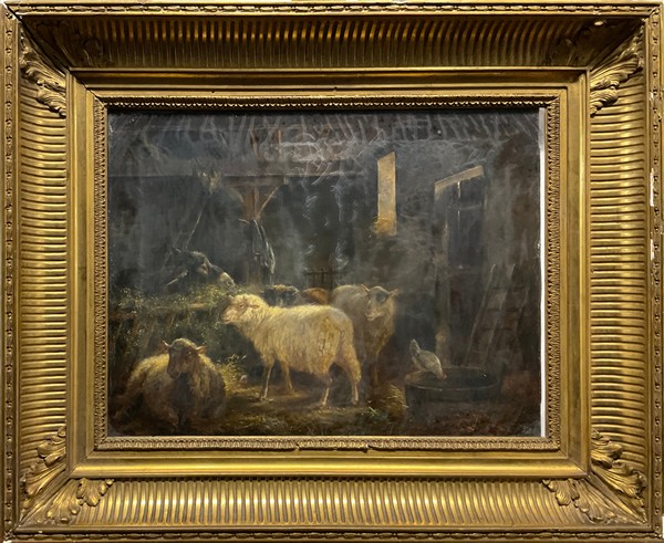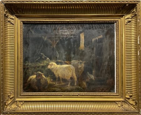 Ignoto di fine XIX secolo "nella stalla" olio su tela (cm 38x48) reca firma n