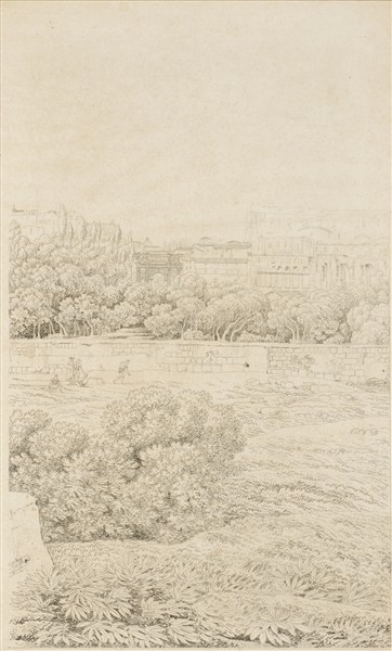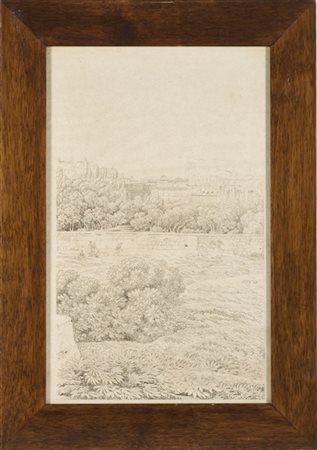 "Scorcio romano con figure con veduta di Roma sullo sfondo"