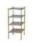 Etagère a quattro ripiani in mogano e ottone con piedi su ruotine e pinnacoli baccellati (cm 47x99x41) (difetti)