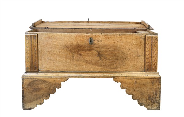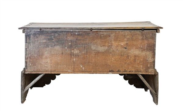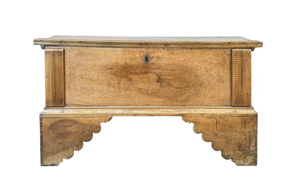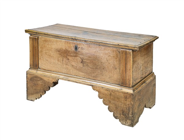 Lotto 1493 | Cassapanca con fronte decorato da montanti incisi a motivi stilizzati, piedi sa