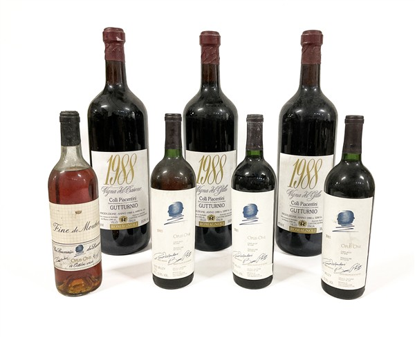 Lotto composto da oltre 10 bottiglie di vino e una di Sakè, notati Sassonero, Malvasia e Opus One della Nappa Valley