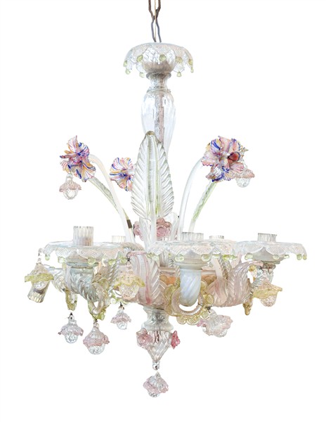 Lotto 1508 | Manifattura di Murano. Lampadario a sei luci in vetro policromo con pendenti a