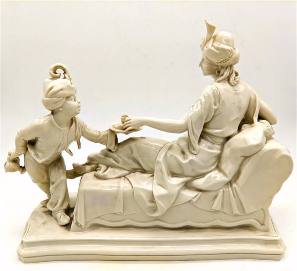 Hugo Meisel (1887-1966) Gruppo in porcellana bianca raffigurante "Sultana e mor