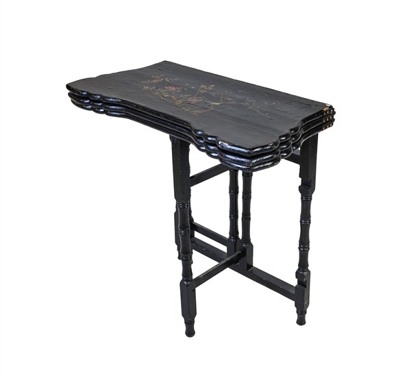 Tavolino da gioco in legno laccato con gambe tornite, doppio ripiano incerniera