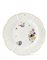 Manifattura di Meissen, 1750 circa. Piatto in porcellana con tesa polilobata e tralci floreali policromi nel cavetto con decoro floreale a rilievo. Marcato sotto la base (d cm 25) (difetti)