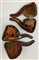 Lotto di cinque pipe in schiuma di mare intagliate a teste femminili tra cui una donna di colore, in custodie originali. Secolo XIX (difetti e mancanze)