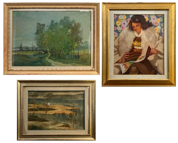 Lotto composto da tre dipinti di soggetti, autori e misure diverse (misura max