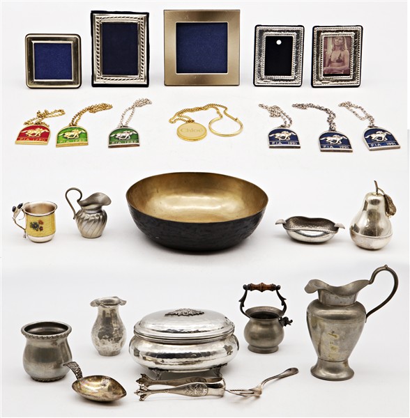 Lotto composto da numerosi oggetti in metallo argentato e altri materiali (dife