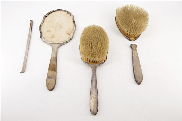 Lotto composto da un binocolo, due servizi da toilette ed uno da dolce in lamin