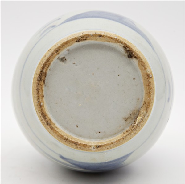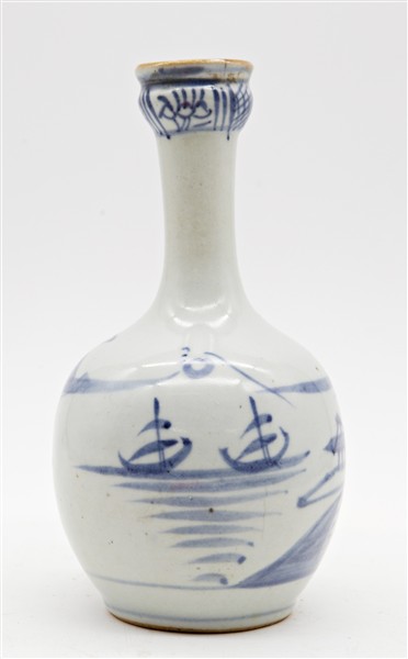 Vaso in porcellana bianca e blu decorato con motivo di paesaggio