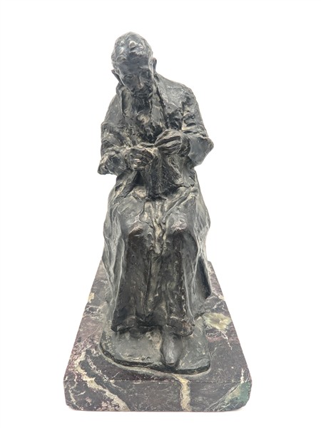 scultura in bronzo (cm 30x20x11) poggiante su base in marmo viola