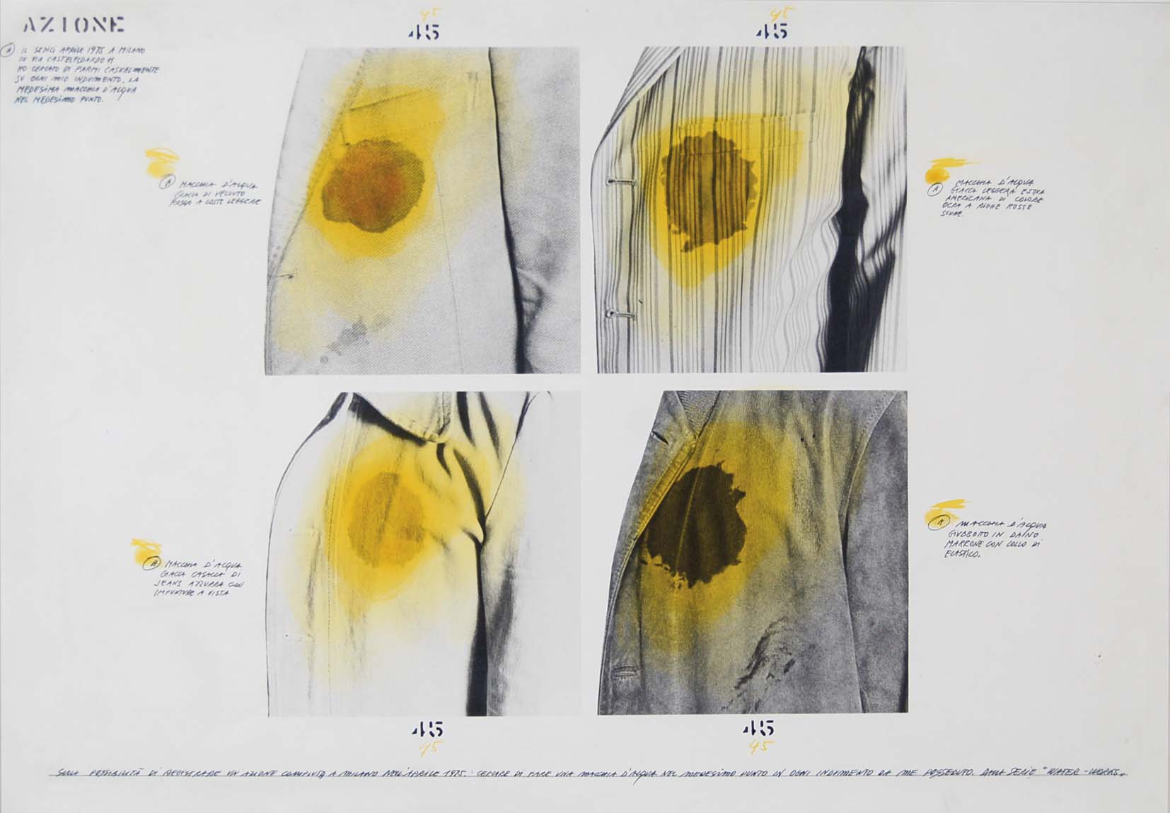 PLESSI FABRIZIO Reggio Emilia 1940 Azione 1975 tecnica mista su carta applicata su cartone 70x100 cm autentica dell'Autore su foto esposizioni Galleria Vinciana Milano - etichetta al retro