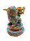 Coppia di candelieri in metallo con smalti cloisonné, fusti in forma di leone b