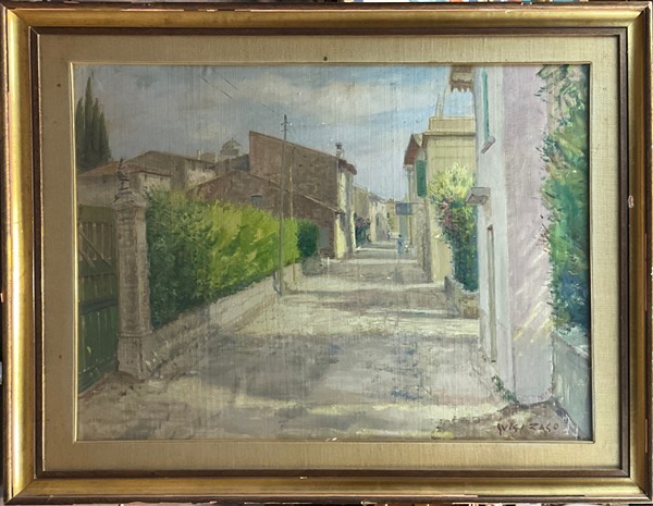 Luigi Zago "Sirmione, Lago di Garda" olio su cartone telato (cm 70x88) firmato