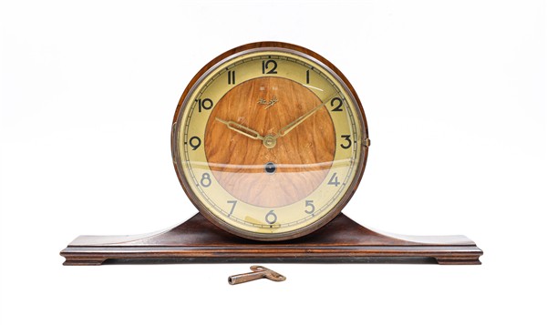 Lotto composto da un orologio da tavolo con cassa in legno anni '30 marcato Kie