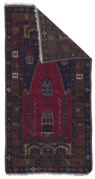 Tappeto preghiera Mudjiur, Anatolia, secolo XX. Mirab a fondo rosso con lampada
