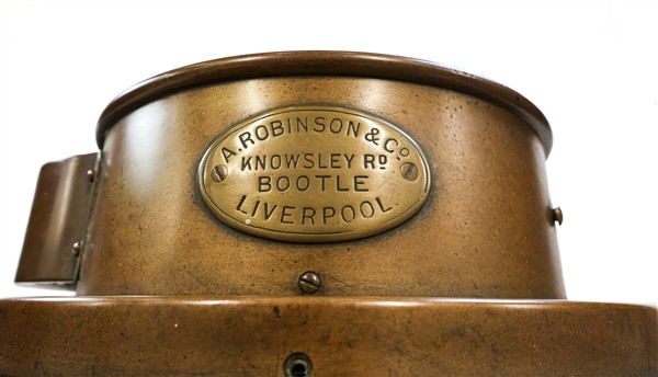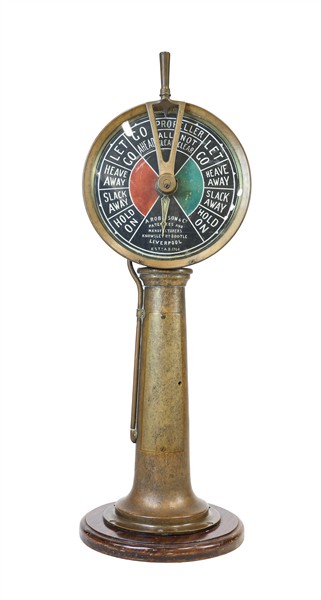 A. Robinson & Co. Liverpool. Telegrafo navale di macchina in metallo su base i