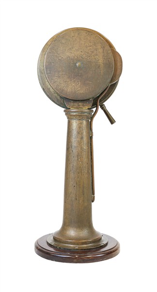 Telegrafo navale di macchina in metallo su base in legno. Inghilterra, fine secolo XIX-inizio XX (h. cm 121) (difetti)