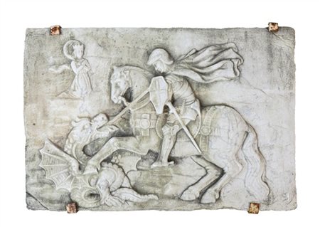 Ignoto, secolo XX Bassorilievo in pietra scolpita raffigurante San Giorgio e il