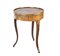 *Tavolino di forma circolare lastronato e intarsiato a motivo geometrico in leg