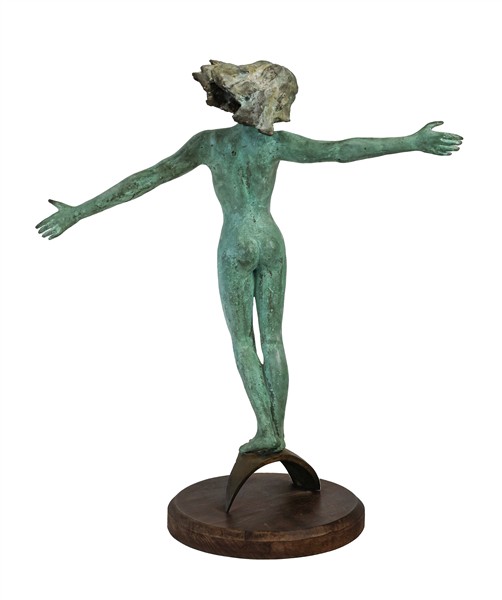 scultura in bronzo e metallo (cm 70x70x25) su base in legno (h cm 3)