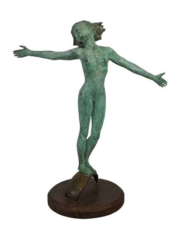 Firma indecifrata, secolo XX "Nudo femminile" scultura in bronzo e metallo (c