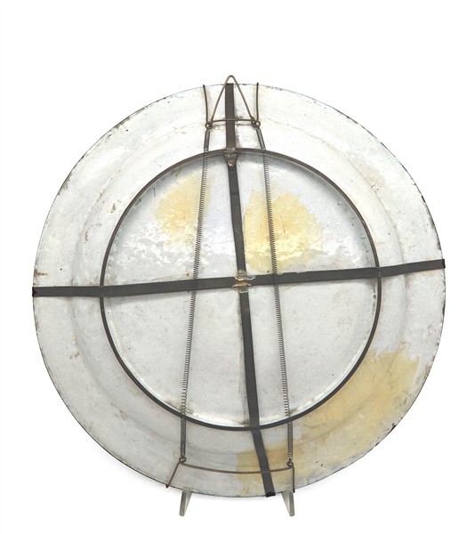 Piatto in rame smaltato e dipinto in policromia con cavetto decorato da figure