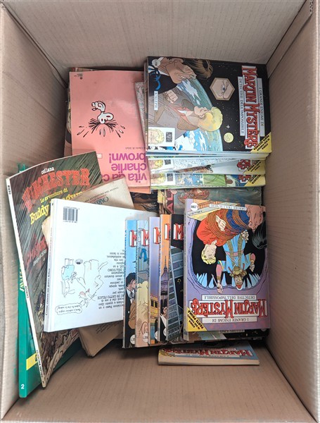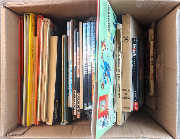 Due cartoni contenenti diversi fumetti, tra cui Martin Mystère, e libri per l'i
