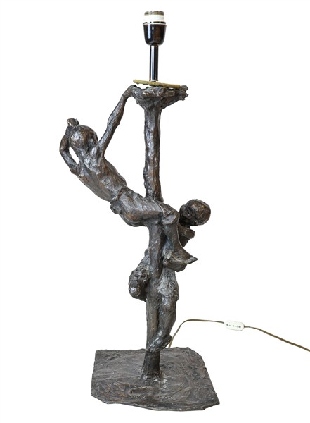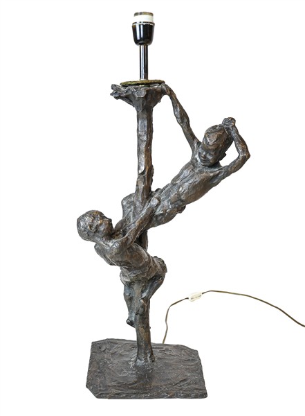 Enrico Panzeri"scultura in bronzo raffigurante Bambini che si arrampicano (cm 65x24x25) sormontata da applique"
