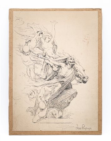 Lodovico Pogliaghi (Attribuito) "Trionfo della morte" matita su carta applicat