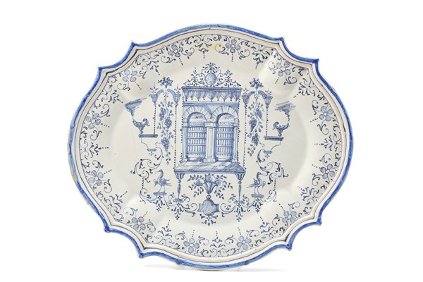 Manifattura di Pavia, secolo XVIII, probabile bottega Rampini. Vassoio a profil