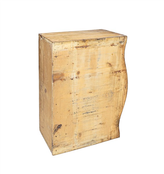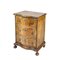Mobiletto lastronato in noce e filettato, fronte mosso a tre cassetti, piedi an