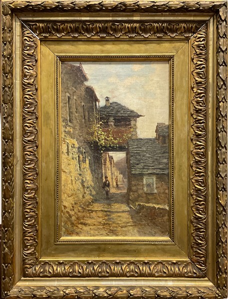 Lorenzo Gignous "Vicolo di paese" olio su tela (cm 59x37) firmato in basso a si