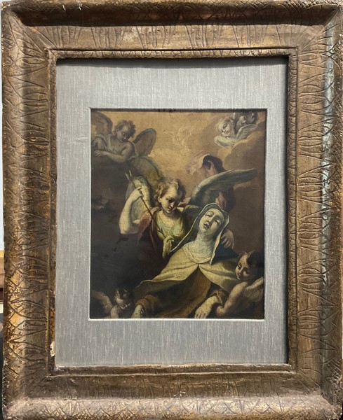 Scuola del secolo XVIII "Estasi di santa Teresa" olio su tela (cm 33x28) in co