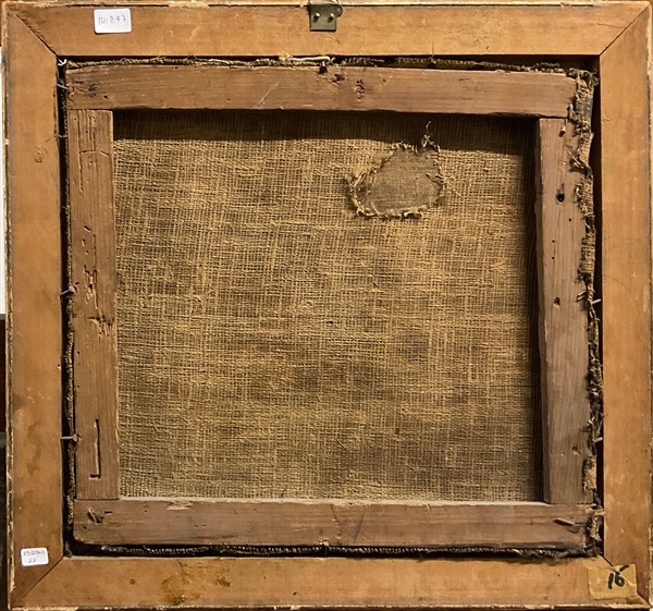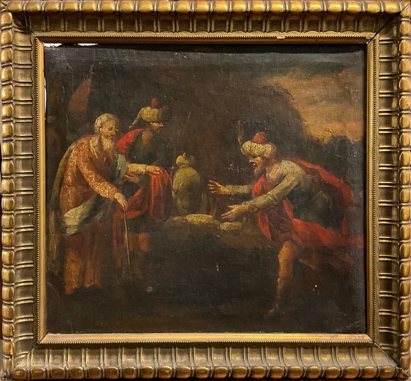 Scuola del secolo XVIII "Scena biblica (?)" olio su tela (cm 30x32) in cornice