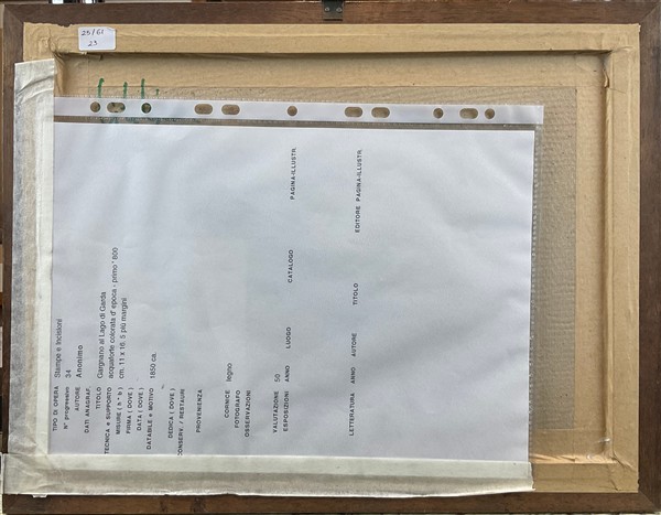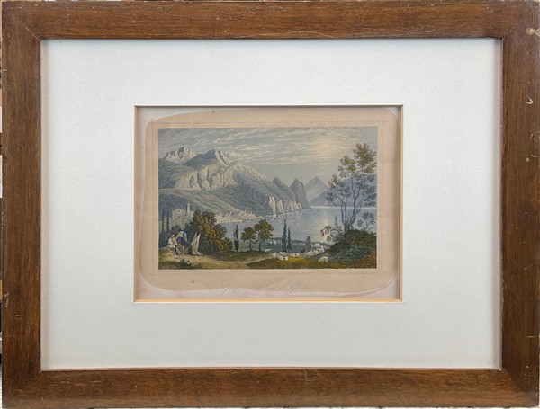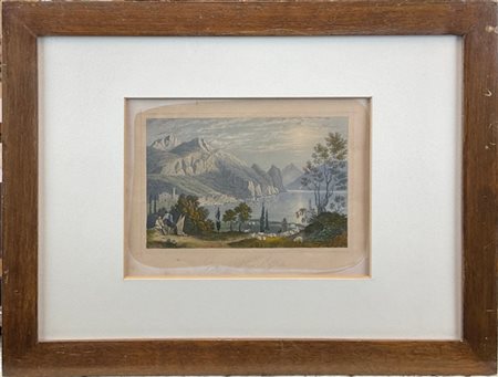Artista del secolo XIX "Gargnano al lago di Garda" acquaforte colorata (cm 11x