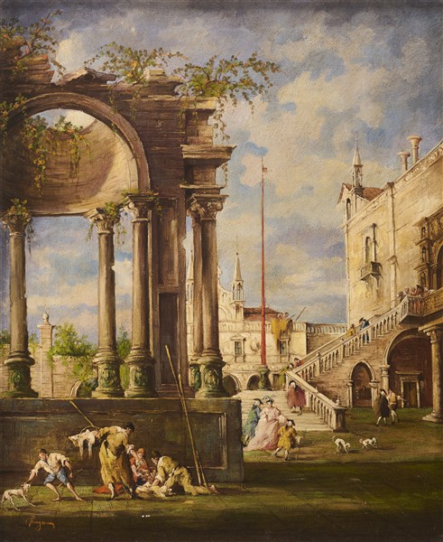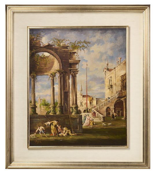 Giuseppe Ponga "Capriccio veneziano" olio su compensato (cm 71x58,5) firmato in
