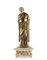 Dignitario, scultura con veste in lamina incisa a medaglioni e motivi floreali, mani e viso scolpiti in avorio, base in alabastro