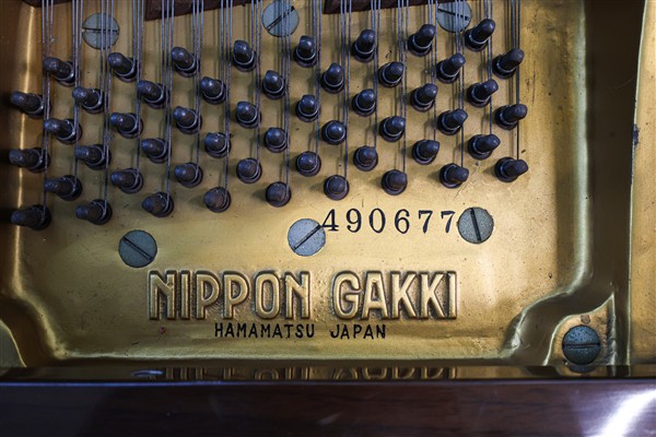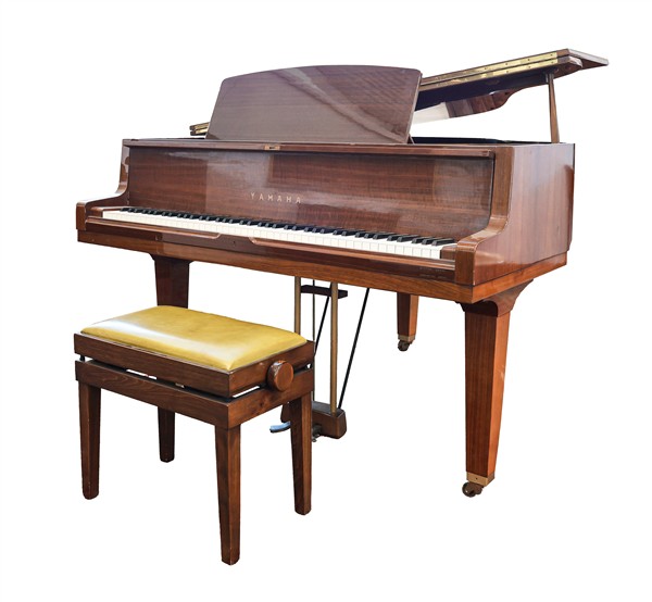 Pianoforte a 1/4 di coda modello G1, nippon gakki Hamamatsu, con finitura in legno scuro. Numero di matricola 490677, 1966. Si consiglia revisione (cm 144x122x168) acompagnato da sgabello (lievi difetti)