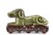 Cane accucciato in pietra dura verde screziata russet, su base in legno Cina, d