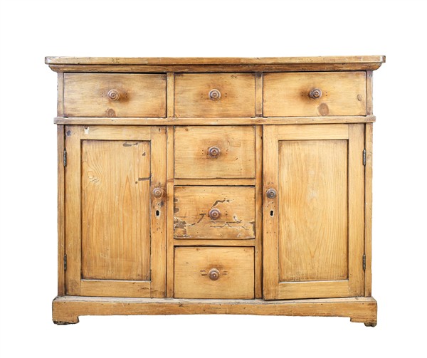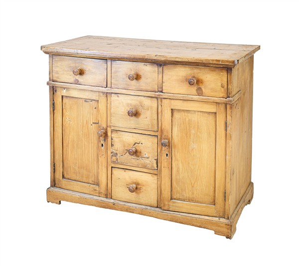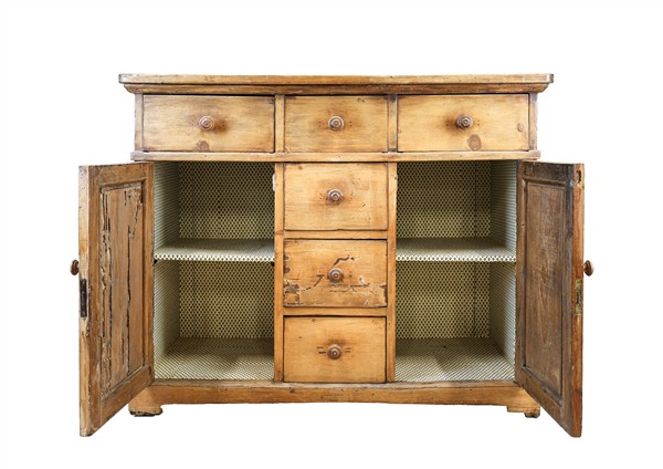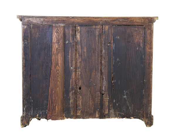 Credenza a due sportelli, tre cassetti verticali e tre cassetti allineati sottopiano. Fine secolo XIX (cm 122x98x49) (difetti e restauri)