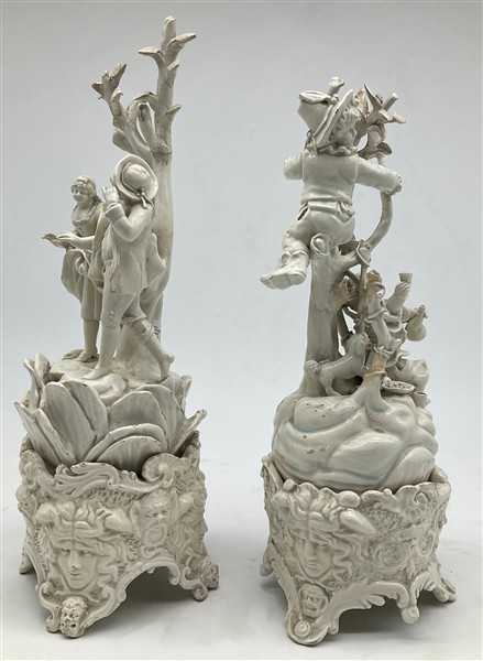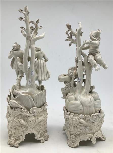 Manifatture venete, secolo XIX. Due gruppi in terraglia smaltata in bianco raff
