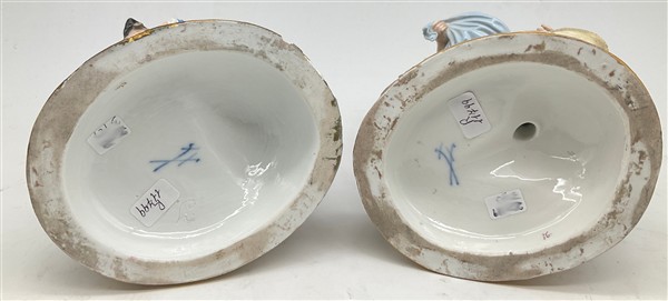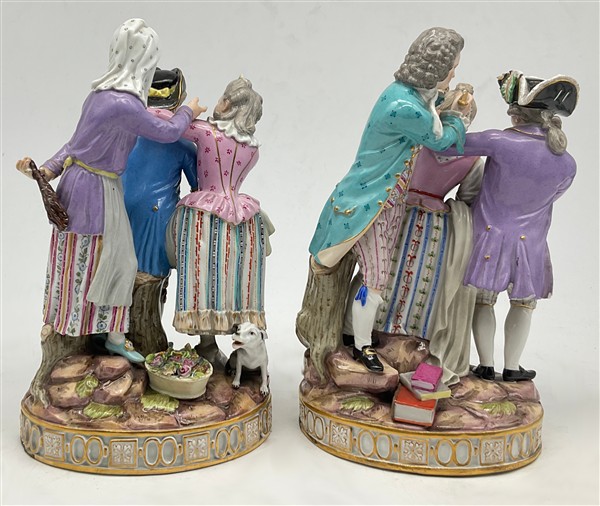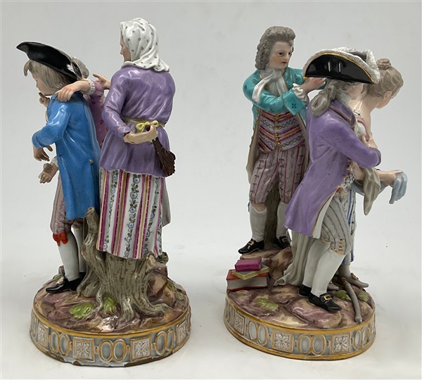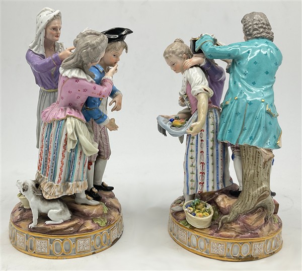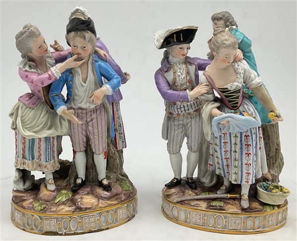 Manifattura di Meissen, secolo XIX. Due gruppi in porcellana policroma raffigur